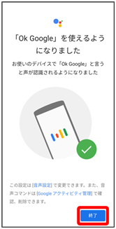 - 以前にVoice Match機能を設定したことがある場合は、「Ok Google」が有効になります(