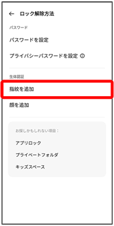 - 続けて別の指紋を登録する場合は、指紋を追加をタップします。