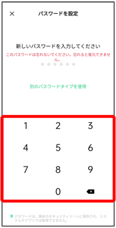 - ロック画面パスワードが未登録の場合は、登録画面が表示されます。画面の指示に従って操作してください。