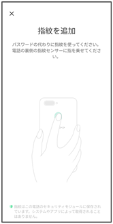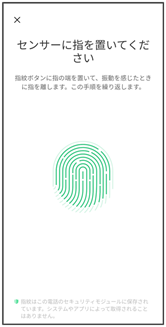 - 指紋認証を行う画面で、指紋センサーに指を当てる