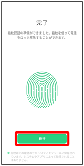 - 指紋センサーに指を触れたまま指紋の登録や認証を開始すると、起動できない場合があります。指を離し、再度操作してください。