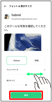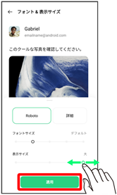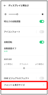 | フォント & 表示サイズ | 画面に表示される文字の種類や大きさ、画像の大きさを設定します。 | |