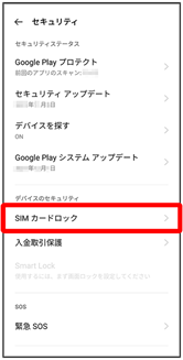 | SIM カードロック | SIMカードロックに関する設定ができます。 | |