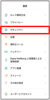 | デバイスマネージャー | 端末を管理するアプリの確認と、有効/無効の設定ができます。 | |