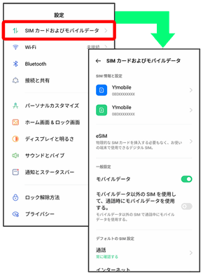 • ↓oppo-reno5-a-esim_icon_120をタップすると、その画面で利用できる機能の設定や項目が画面に表示されます。