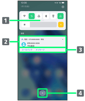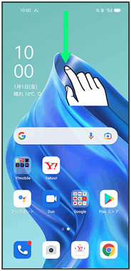 ステータスバーを下にフリック/スワイプすると、通知バーを開くことができます。通知バーでは、通知アイコンとその内容を確認できます。