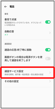 通話サービス設定画面が表示されます。