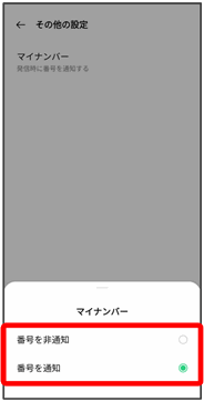 • ↓番号を非通知番号を通知