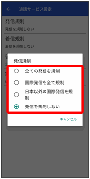 発信規制/着信規制が設定されます。