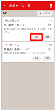 • ↓新着メール一覧画面で、削除する新着メールの削除