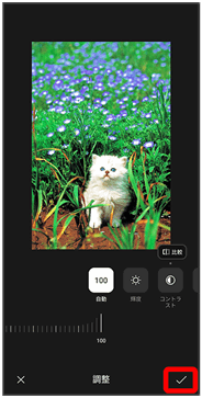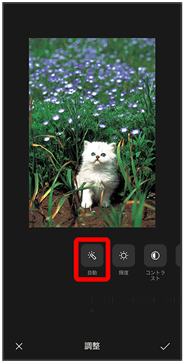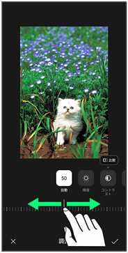 インジケータを左右にドラッグして、自動調整の強弱を調節