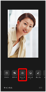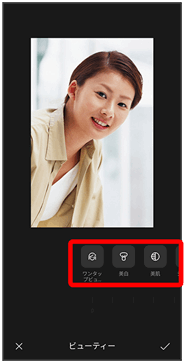 人の顔を検知して、小顔、美肌などの美顔加工をすることができます。