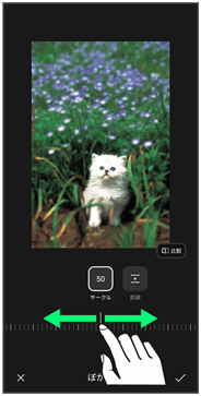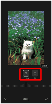 インジケータを左右にドラッグして、ぼかしの強弱を調節