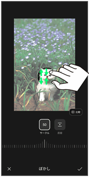 画面をドラッグ/ピンチして、ぼかしの位置や範囲を調節