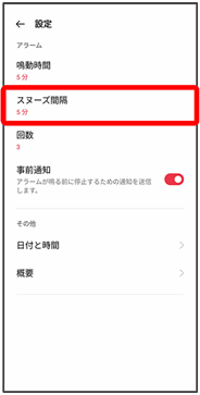 スヌーズの長さの変更が完了します。