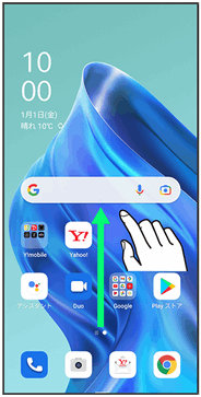 • ↓ホーム画面を上にフリック/スワイプ