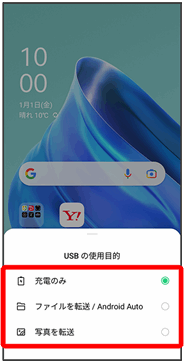 • ↓充電のみファイルを転送/Android Auto写真を転送