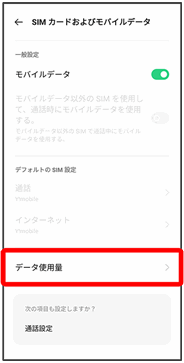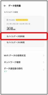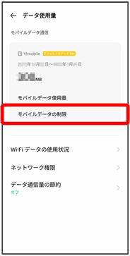 モバイルデータ通信の使用量を確認したり、使用を制限することができます。