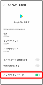 バックグラウンドデータの通信 バックグラウンドデータの通信を制限します。詳しくは、「バックグラウンドのモバイルデータ通信を制限する」を参照してください。