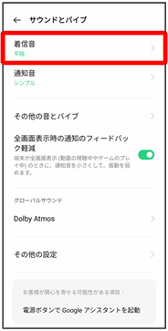 | 全画面表示時の通知のフィードバック軽減 | 端末が全画面表示のときに通知音を小さくして、振動を弱めるかを設定します。 | |