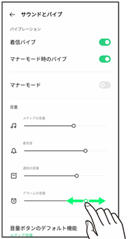 | マナーモード時のバイブ | マナーモードを有効にしたときにバイブレーションを動作させるかどうかを設定します。 | |