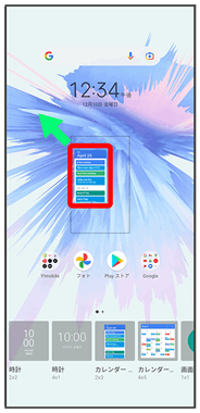 ホーム画面シートが複数あるときにホーム画面を左右にフリック/スワイプすると、ホーム画面シートを切り替えることができます。