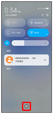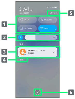 クイック設定パネルの一部が表示されます。詳しくは、「クイック設定パネルの見かた」を参照してください。