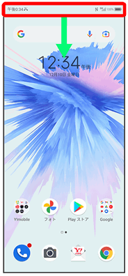 ステータスバーを下にフリック/スワイプすると、通知パネルを開くことができます。通知パネルでは、通知アイコンとその内容を確認できます。