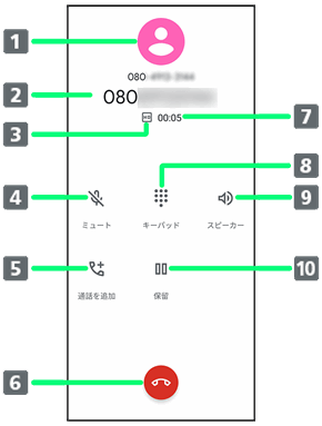 通話中は、アイコンをタップすることにより、次の機能が利用できます。