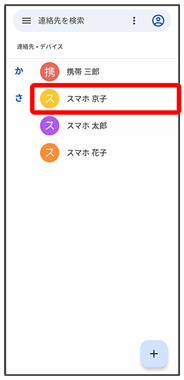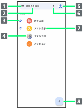 | タップすると、連絡先詳細画面が表示されます。 | ||