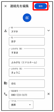 連絡先の登録が完了します。