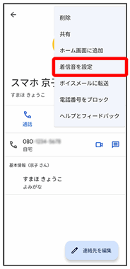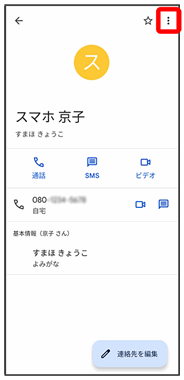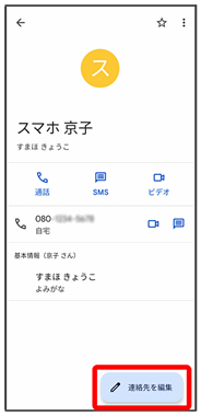 連絡先詳細画面が表示されます。