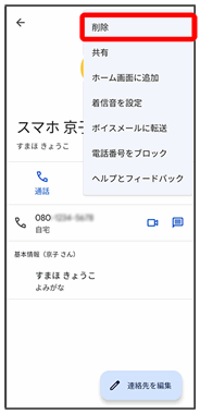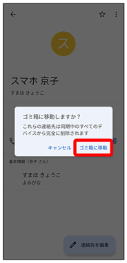 連絡先が削除されます。