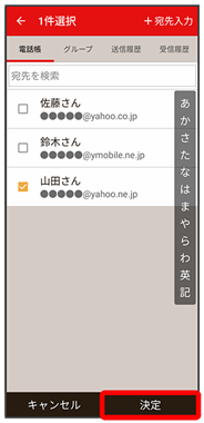 をタップすると、宛先を直接入力できます。また、入力した宛先を電話帳に登録することもできます。