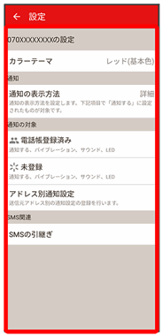 | SMSの引継ぎ | メッセージで受信したSMSデータを引継ぎます。 |