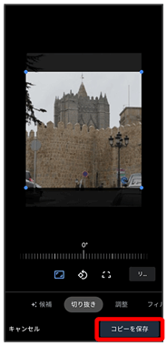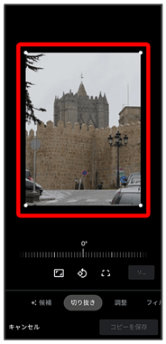 切り出す枠をピンチイン/ピンチアウト/ドラッグして、サイズ/位置を調節