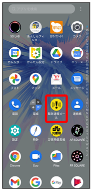 緊急速報メールの通知をタップして、緊急速報メールのメッセージ画面を確認することができます。