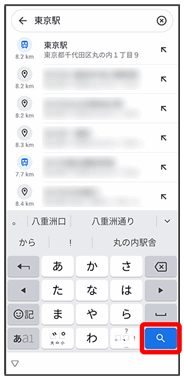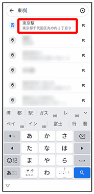 • ↓選択候補から住所や都市、施設名などをタップ