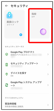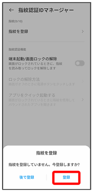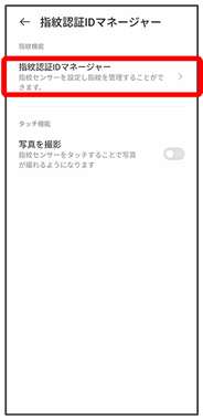 - 指紋センサーに指を触れたまま指紋の登録や認証を開始すると、起動できない場合があります。指を離し、再度操作してください。