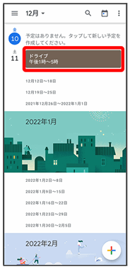 カレンダーを利用してスケジュール管理ができます。インターネット上のGoogleカレンダーと同期するには、あらかじめGoogle アカウントでログインしておいてください。