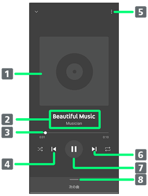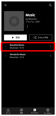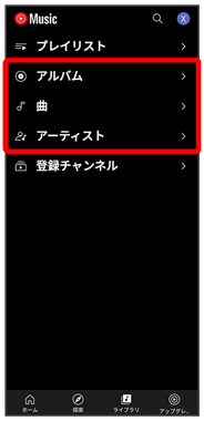 公式アルバムやミュージックビデオなど幅広い音楽コンテンツが楽しめます。ここでは内部ストレージ/SDカードに保存されている音楽を再生する操作を例に説明します。