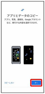 本機の初期設定中に、クイックスイッチアダプターを利用してこれまでお使いのスマートフォンから簡単にデータを引き継ぐことができます。