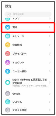 | アプリの最適化 | アプリの電池消費の最適化や、電池消費の自動制御を設定します。 | |