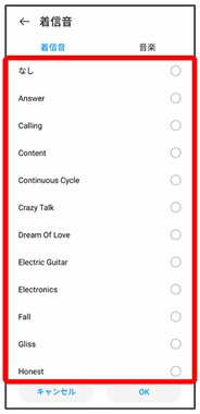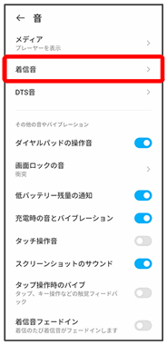 | 着信音 | 着信音や通知音の種類を設定します。 | |