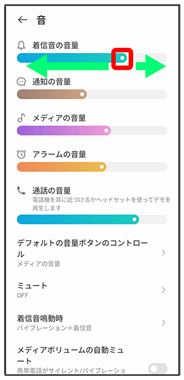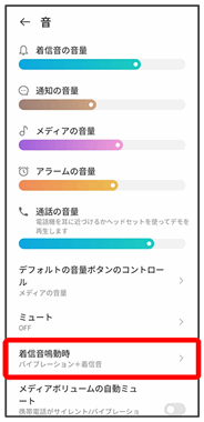 | デフォルトの音量ボタンのコントロール | 音量大キー/音量小キーを押したときに着信音の音量/メディアの音量のどちらを調整するかどうかを設定します。 | |