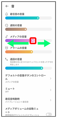 | メディアの音量 | 音楽や動画などの音量を設定します。 | |