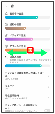 | アラームの音量 | アラーム音の音量を設定します。 | |