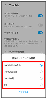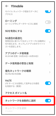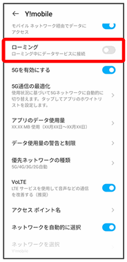 その他、必要に応じて通信方式、データローミングの設定を変更してください。