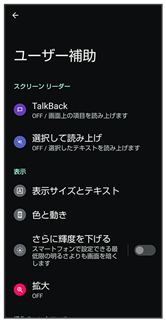 | 表示 | テキストと表示の一部の項目が表示サイズとテキストとして追加されます。 詳しくは、「ディスプレイの設定について」を参照してください。 テキストと表示の一部の項目が色と動きとして追加され、ダークモードが移動されます。 拡大に入力しながら拡大が追加され、文字の入力に合わせて拡大範囲を移動させるかどうかを設定できます。 そのほかの項目が一部変更されます。 |