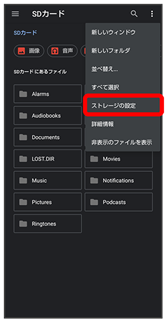 内部ストレージ/SDカードの登録内容は、事故、故障、修理、機種変更などの際や、その他の取り扱いなどによって、消失または変化してしまうことがあります。大切なデータは定期的にバックアップをとっておかれることをおすすめします。なお、データが消失または変化した場合の損害につきましては、当社では責任を負いかねますのであらかじめご了承ください。